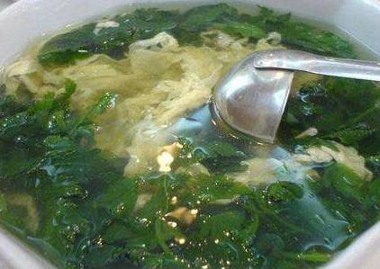 南京家常菜,菊花脑与鸡蛋或鸭蛋烧的汤。