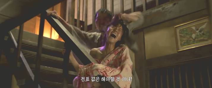 末子(李贞贤 饰),从慰安所逃跑,又被送到端岛妓院,对日本人的蹂躏早就麻木。她是无可奈何的被动者。