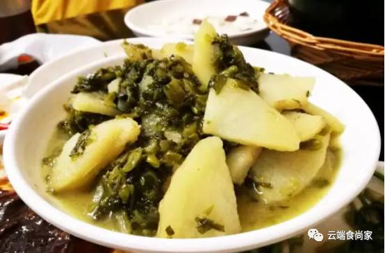 土豆片酥软粉糯,咸菜鲜咸有嚼劲