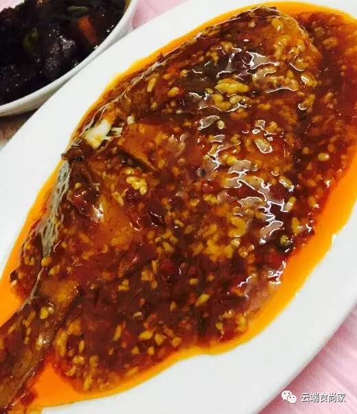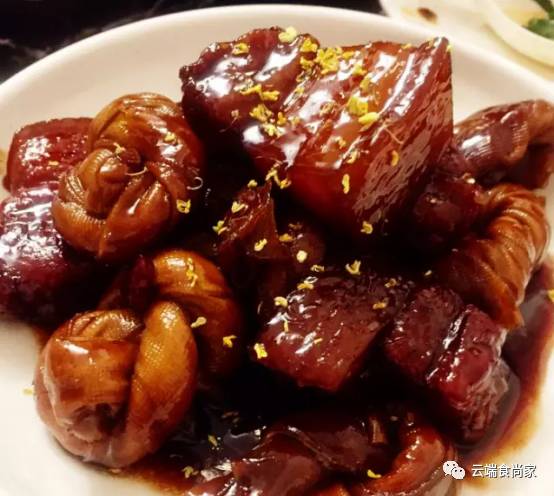 赤浓酱汁配上百叶结 ,再洒上些桂花