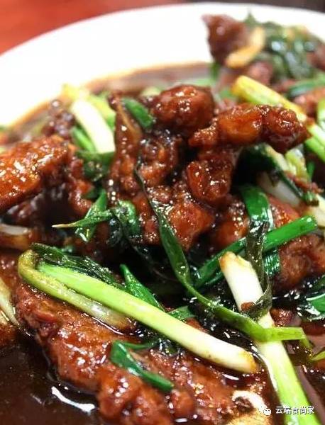海金滋的葱烤大排用的是空心葱,葱呈翠绿色