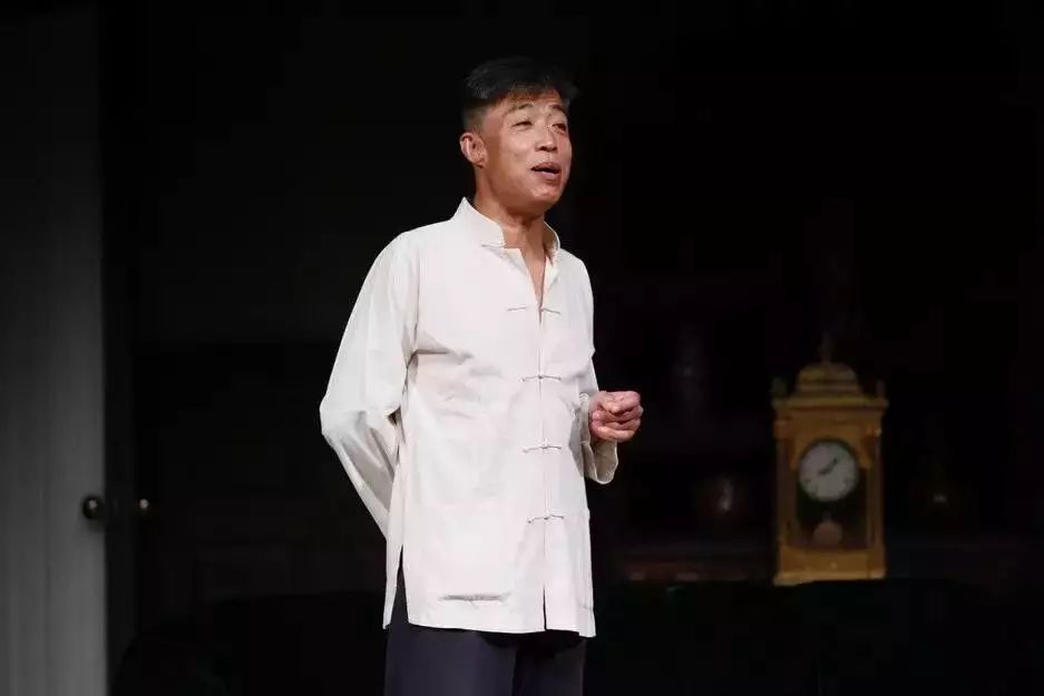 剧作临近结尾的时候,周朴园有一个与周冲单独交谈的机会,他会关心周冲为什么这么晚了还没有睡觉,会关心周冲白天想跟父亲说但没来得及说的事儿。同时,周朴园还特别关心儿子的心理感受“你今天快活吗?”(这句台词演出时我特别担心观众会笑场,还好没有),可以说深夜谈话里的周朴园才是一个真实的周朴园,他可以不顾及身份与社会地位而袒露自己对这个略显叛逆的儿子的真实感受。