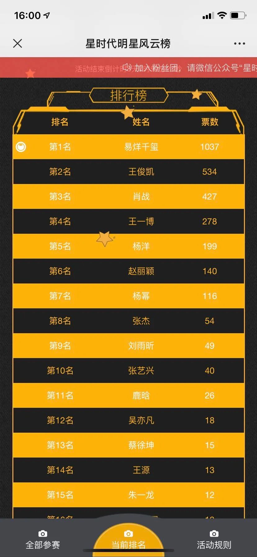 今日打榜排名前三:易烊千玺、王俊凯、肖战