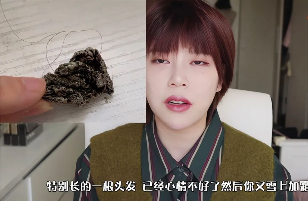 该网红发布了一则长达十分钟的视频,将事情的来龙去脉讲述的十分详尽。据悉,现在吉杰跨界直播带货做的风生水起,这位网红因为机缘巧合就在吉杰的直播间购买了一个小零食。但没想到的是,零食刚收到就发现食品安全问题,零食上竟然有根头发。