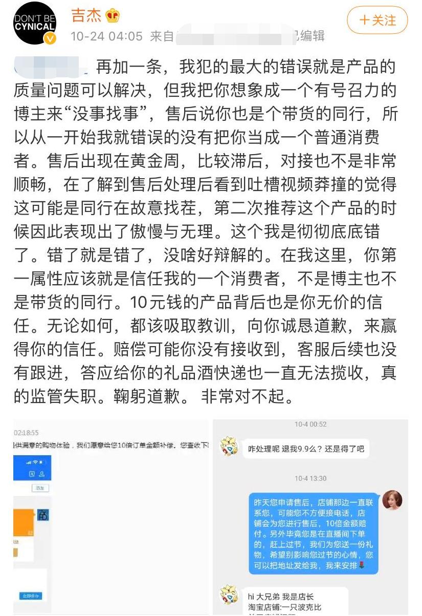 面对这些言论,该博主一一进行了反驳,并且晒出了自己和吉杰团队的对话,通篇自己只说了两句话,何来威胁一说。而关于十倍赔偿,更是连个影子都没有。