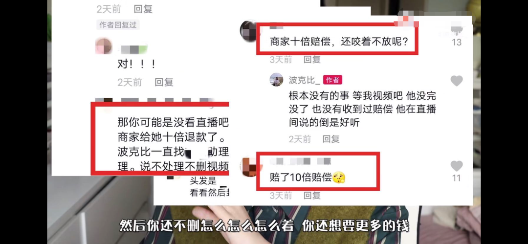比如一直强调那并不存在的十倍赔偿、甚至还表示自己完全把对方当做博主而忘记其也是一个消费者的身份等等。