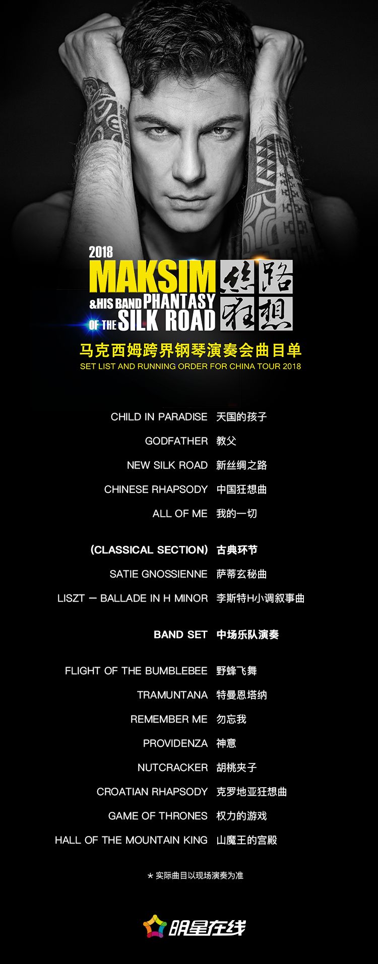 此次音乐会曲目全部由马克西姆亲自甄选,