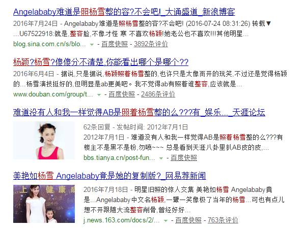说Angelababy是照着杨雪来整的。