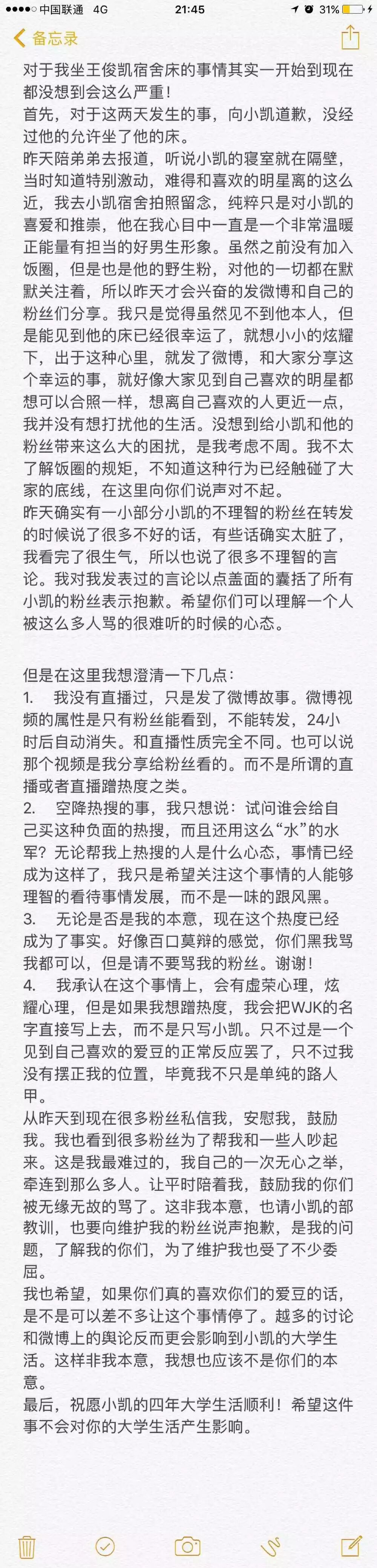 尽管小凯小心翼翼,没在校园里引起骚动。但微博上又因为某网红坐王俊凯的床引发了一场骂战。真是人在家中躺,锅从四面来。