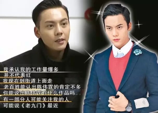 陈伟霆表示:「老实说,我承认我的工作量爆多,但并不代表红。我现在到街道上走,老百姓能认出陈伟霆的不多。」佢又表示:「你能说出陈伟霆有甚么作品吗?有一部分可能关注我的人会知道《老九门》,所以如果一个艺人没有好的作品,或者是他对于你没有很大的影响,就算他再红,我觉得也没甚么意思,尤其是现在这个时代,很容易很快被人替换。」