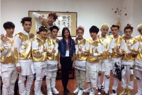 后台跟EXO合照,什么张艺兴拥抱她,吴亦凡、鹿晗都和她有单独合照!