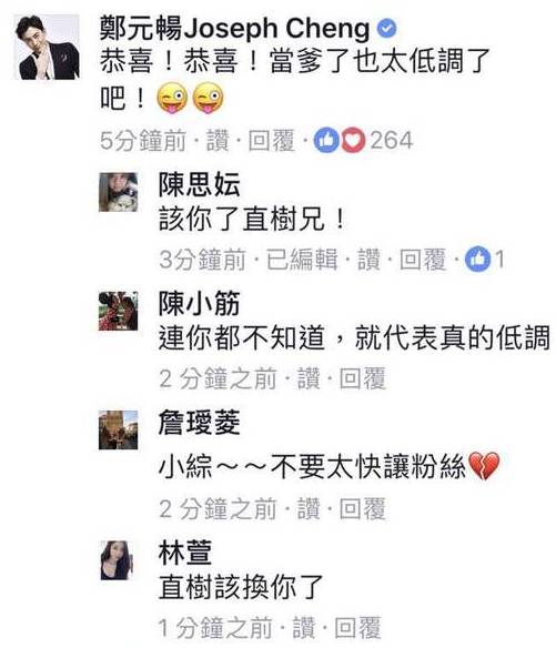 就连好友郑元畅也表示不知情,“也太低调了吧!”↓