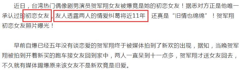 而现在突然宣布结婚的贺军翔,想必粉丝也对他的女朋友心知肚明。此前据爆料,他的另一半是与自己分分合合十多年的初恋女友,两个人高中时期就交往了↓