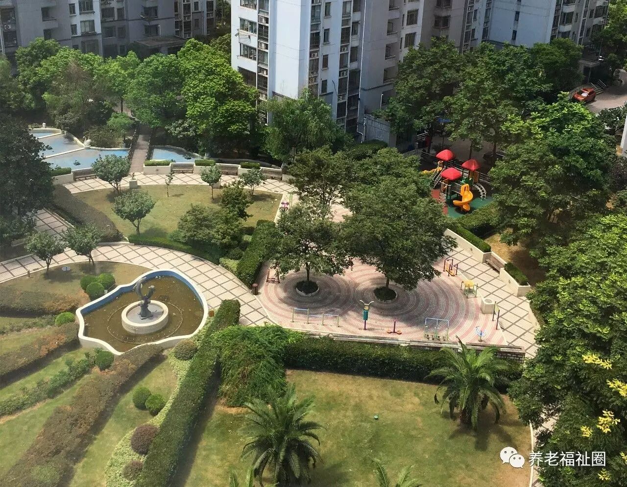 从窗外看出去~ 值得一提的是院方与隔壁小区友好协商,老人们可以方便的到隔壁小区的中心花园休憩。(就是下面这个)▼