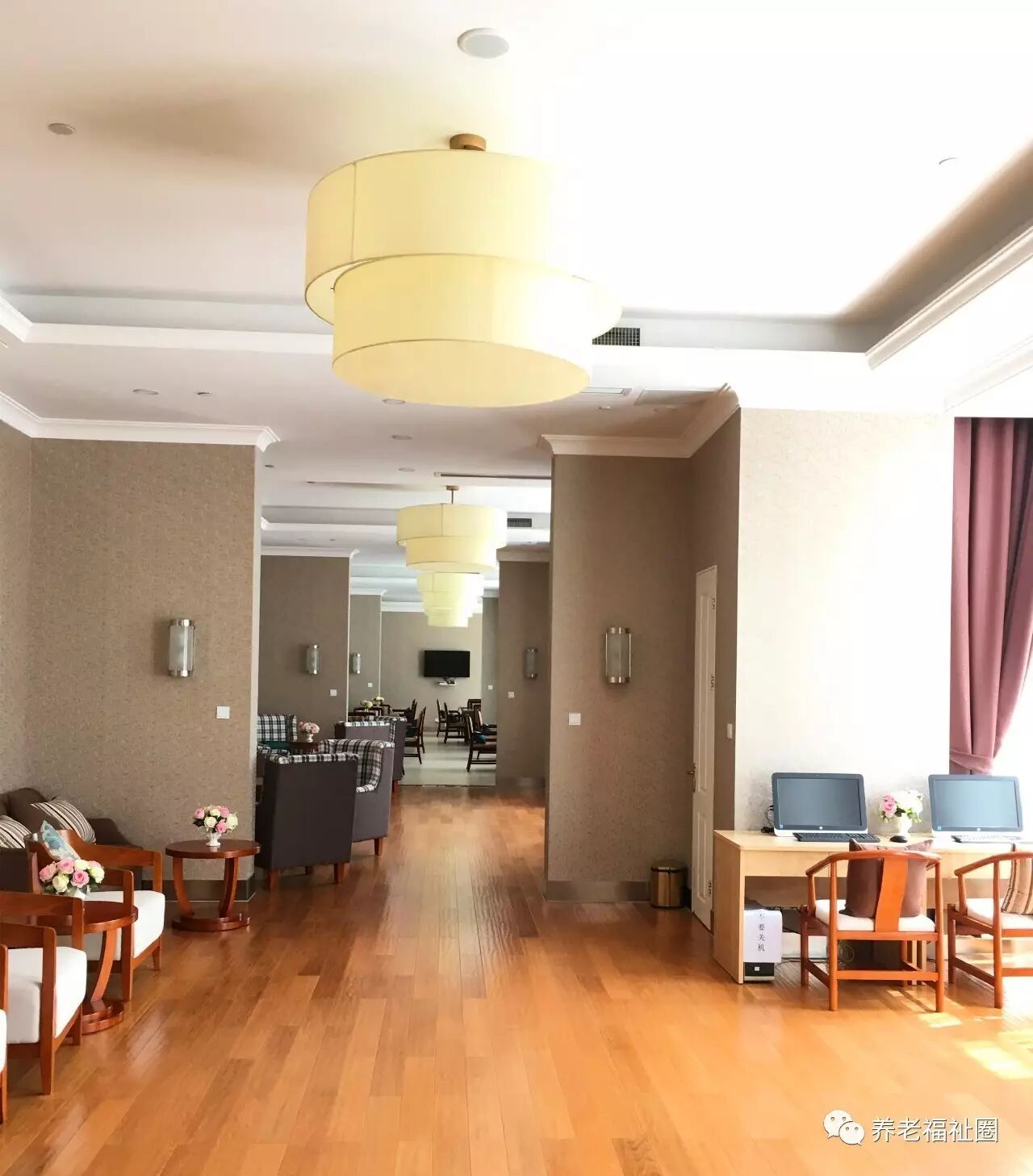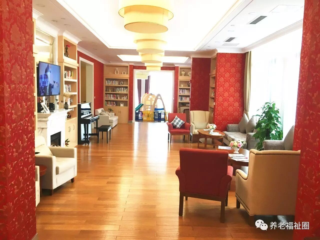 进入遐福养老院,一楼由阅览室、餐厅、上网区、儿童游乐区组成。院方介绍,一楼全部铺设了地暖,整栋大楼是配备中央空调(风冷模块水循环系统),保证冬天不会干燥;院方十分看重空气和水质的干净与卫生,所以安装了新风系统,室内正压保证了就算是雾霾天下开窗开门通风,室外的坏空气也无法进入。▼
