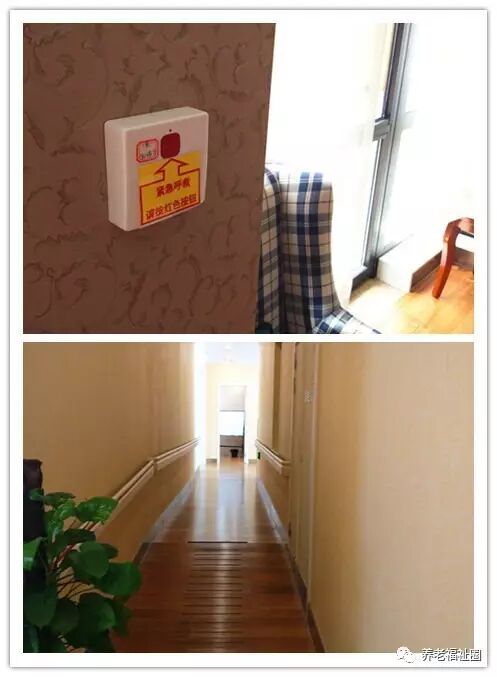 随处可见的紧急报警按钮;过道全部安装了扶手,方便老人抓取,坡道的设计使得轮椅可以轻松的推过。▼