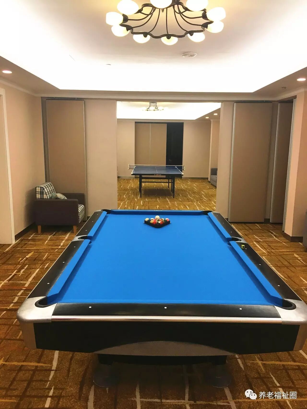 打台球和乒乓球~此处也可以为老人办个人画展和书法展~▼