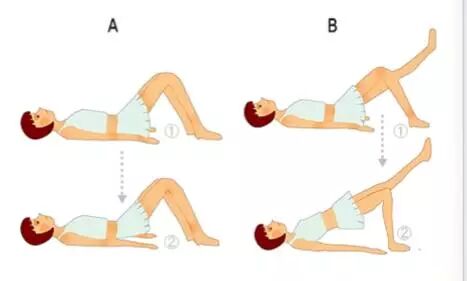 2. 在腹部用力的状态下稍微抬起骨盆,数到2后再臀部上用力。重新数到2慢慢放松紧张。反复20次。
