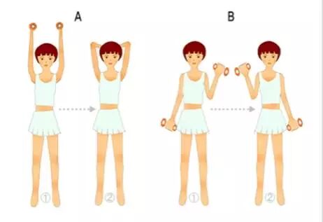 如果没有哑铃,可以用装满水的水瓶来进行运动。所以运动每组做15次,反复做3组。