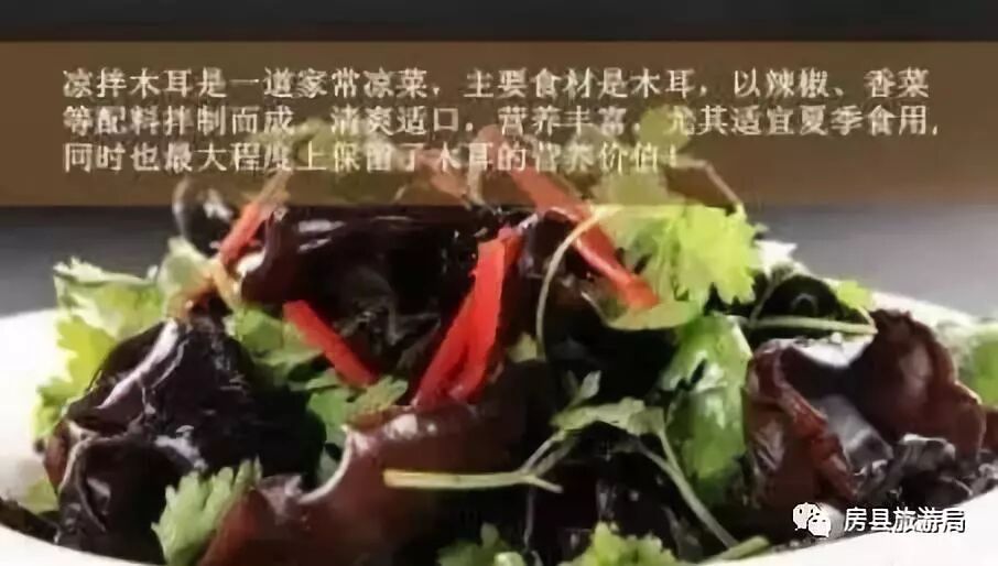 房县黑木耳,为国家地理标志保护产品,地理标志证明商标,农产品地理标志产品。色鲜、肉厚、朵大、质优、营养丰富,赢得“房耳”盛誉。这里的黑木耳“形似燕,状如飞”,又被称为燕耳,有山珍之王的美称。房县是全国著名的黑木耳生产基地县,是驰名中外的“木耳之乡”。