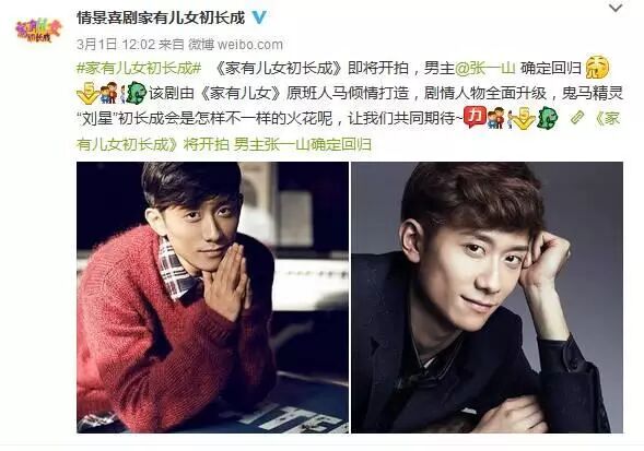 虽然在官方已定的阵容中并没有出现杨紫和宋丹丹的名字。不过随后《家有儿女》中的妈妈宋丹丹转发了张一山的微博,并@“小雨”尤浩然说“不许忘了:我是你们的‘第一个’表演老师”,同时还唤“儿女们”9月重聚。随后,“爸爸”高亚麟也转发微博,提醒道:“是三天后见!”