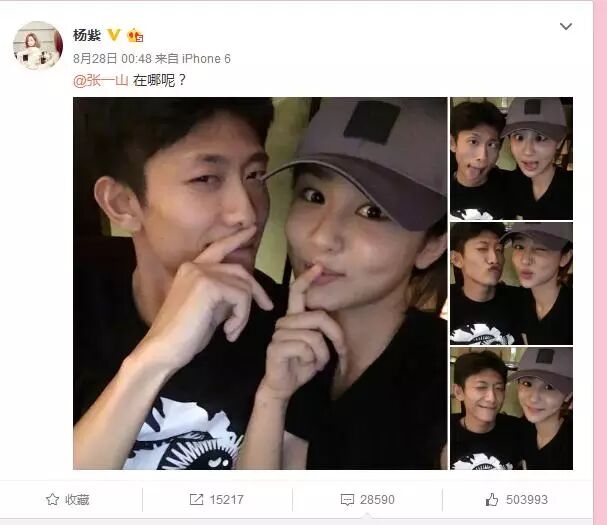 昨天凌晨48分,张一山和杨紫放糖了!齁(hou)着了!杨紫发博,放出一组与张一山的合照,二人亲密无间,鬼马自拍,可见感情是相当好。