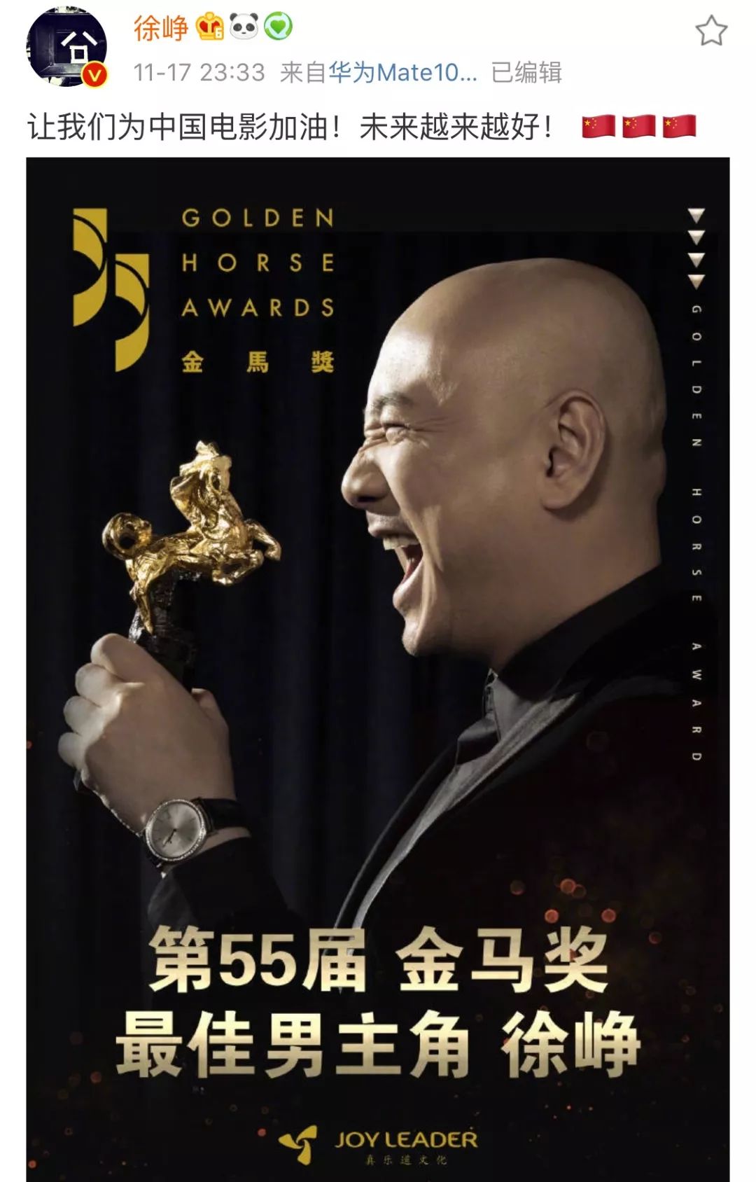 凭借《我不是药神》摘得“最佳男演员”桂冠的徐峥,在获奖感言的最后说道: