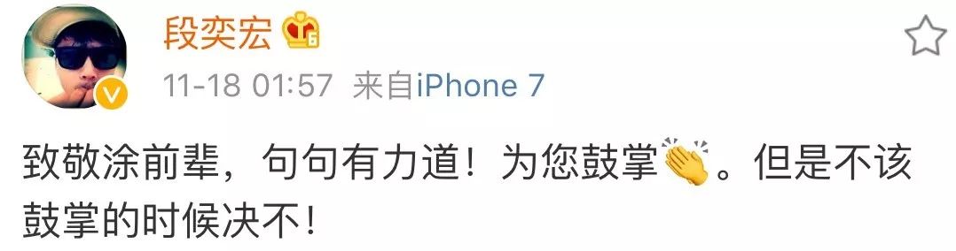 而在颁奖典礼结束之后,段奕宏在微博发声支持涂们老师。