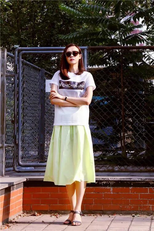 李艾完全就是仗着自己的身材好,才敢这么穿搭的呀!虽然白T恤配着半身裙简单不过却很显年轻,但是李艾选了长款T恤,把身材都穿成了五五分的感觉,不仅显得没什么特色,而且还白白浪费了自己的身材,也是很可惜呢。