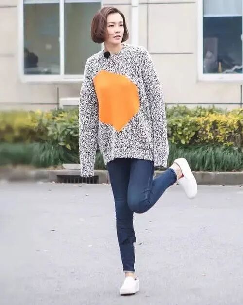 这才是李艾的正确打开方式吧,利落优雅的及耳短发配着牛仔长裤和宽松的毛衣简单利落,又显得格外年轻,不论是身材还是气质,真的是半点看不出是当妈的样子呀!走在校园中都能毫无违和感呢。比起舞台上的穿搭效果简直好的不是一点点呀。
