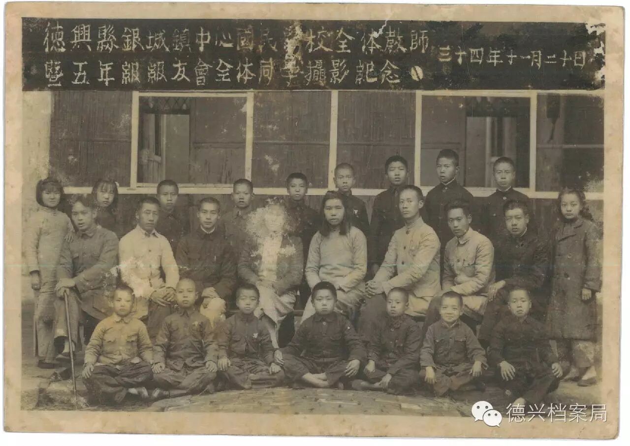 民国三十四年(1945)十一月二十日德兴县银城镇中心国民学校(今银城一小)全体教师暨五年级级友会全体同学摄影纪念