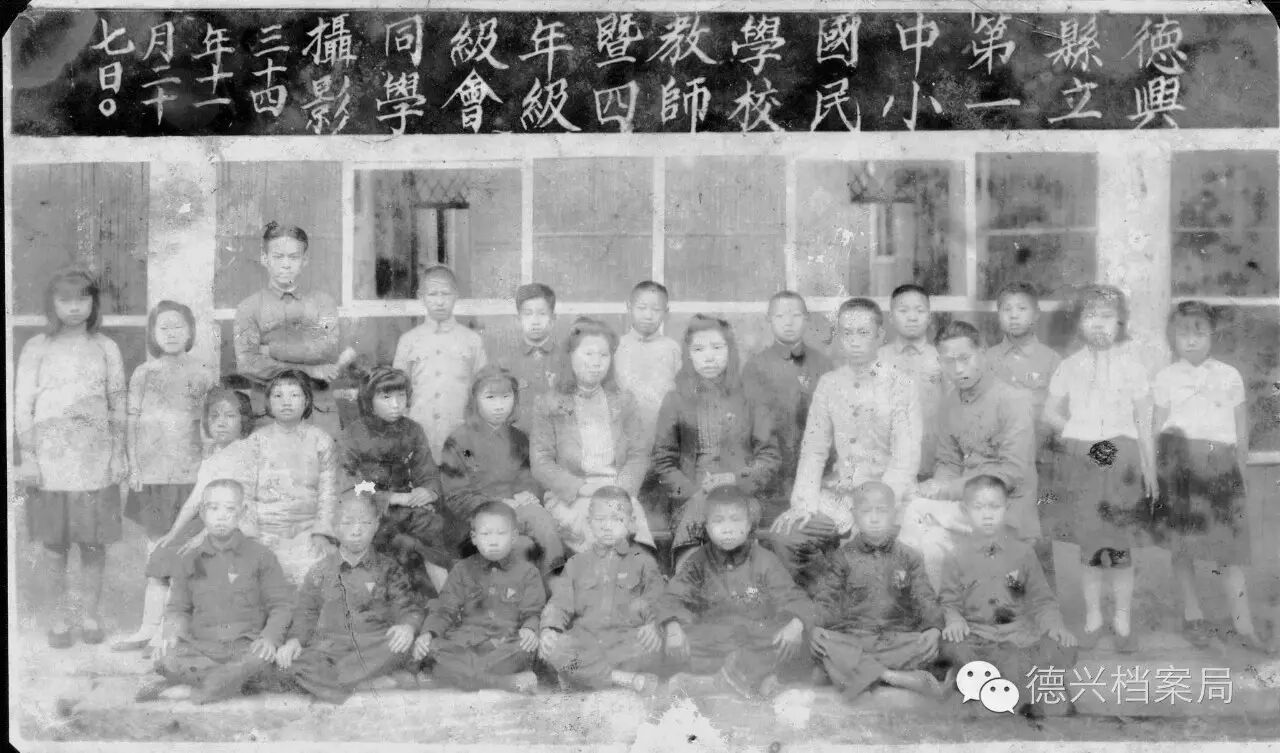民国三十四年(1945)十一月二十七日德兴县立第一中小中国民学校(今银城一小)教师暨四年级级会同学摄影