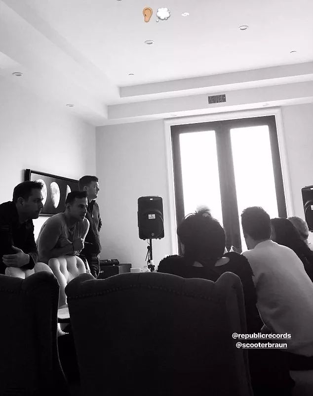 A妹现在曝光了她新专辑讨论会的画面,照片中是她将新专辑完成的部分放给经纪人 Scooter Braun 和 Republic Records 唱片公司高层试听,证实了 AG4 Is Coming!