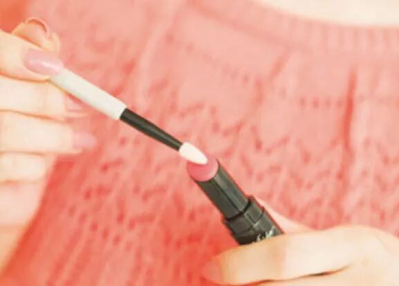 首先用干净的眼影棒沾取有色润唇膏,如果没有干净的眼影棒在身边,也可以暂时用棉签代替。拥有色润唇膏代替眼影也能美美哒。