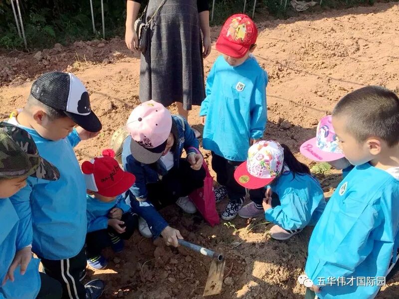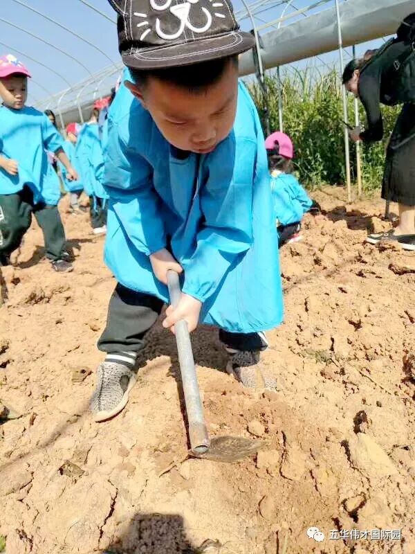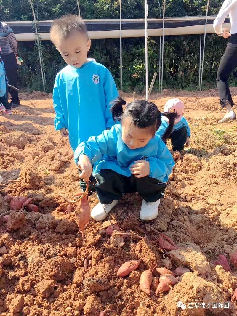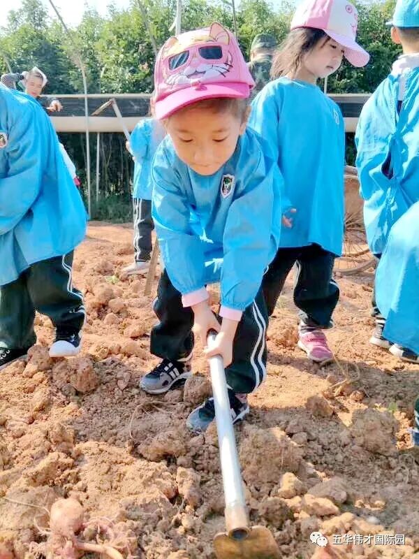 老师讲解完后,孩子们欢呼雀跃,立刻拿起早已准备好的小铲子、小锄头挖了起来,在老师帮助下,用锄头一下一下把红薯从土地里挖出来,大多数孩子都是第一次看到生长在田地里的红薯,当红薯从土里露出来的时候,孩子们开心的叫起来,更加用力的挖呀挖呀,直到把红薯完全挖出来。孩子们干劲十足,不一会大家都已经大汗淋漓。
