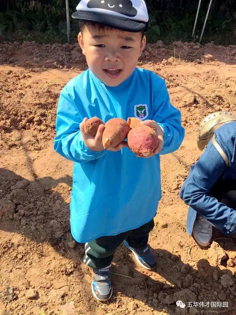经过孩子们一上午的努力,拿起自己的劳动成果,高兴的喊着:老师,这是我挖的,看我多棒啊!来比一比看谁刨出来的红薯大,比一比看谁刨出来的红薯多。
