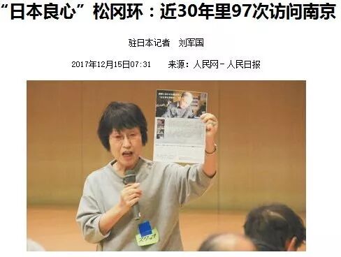 南京大屠杀是我国人民心中永远的伤痛,三十万冤魂惨死于日军手中,更可气的是日本政府至今不肯承认南京大屠杀的相关事实,拼命想掩盖罪行,不过在日本有些有识之士还是有良心的,他们愿意正视历史,愿意为当年日军的罪行向中国道歉,松冈环就是其中一个。