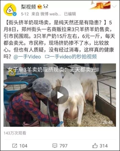 小编也查询了一下,在数天前还有媒体报道在郑州街头也有商贩直接拉来几只羊挤羊奶售卖,引市民围观。