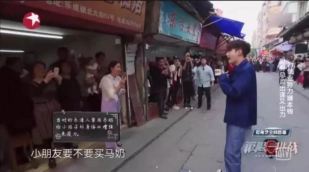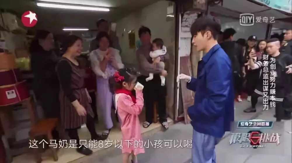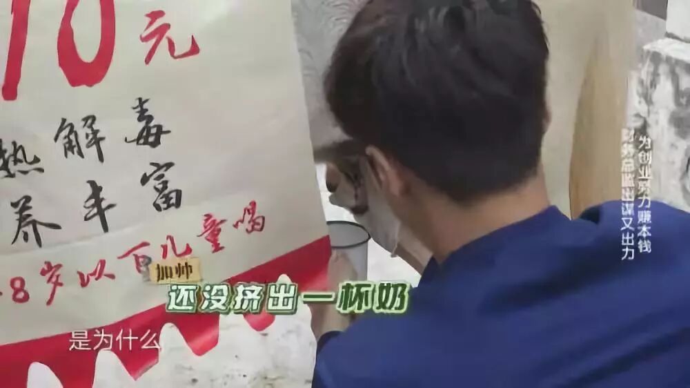 兴奋的张艺兴直接拿着新鲜出炉的第一杯奶到处寻找顾客,节目组也在后期花字和字幕中多次强调: