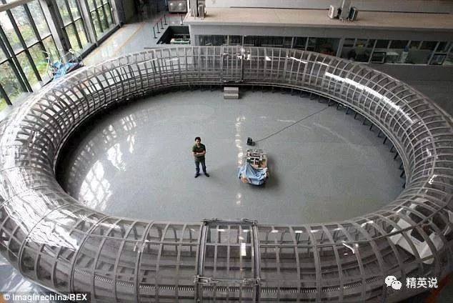 下图就是中国的第一个载人高温超导磁悬浮环形轨道,直径12米。