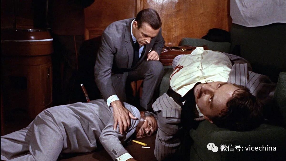 ∆ 电影 《俄罗斯之恋》 中的列车杀人场景有着经典硬汉片的场景设置