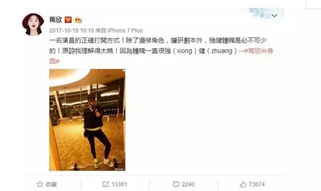 蒋欣也曾幽默的回应:一名演员真正的打开方式,不仅是潜修角色,更要强健体魄。