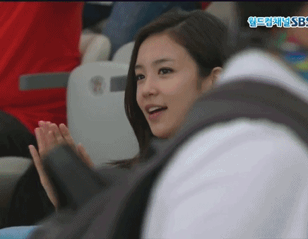 两位韩国美女,第一位是看球赛的美女,第二位是允儿,对着镜头甜笑,美美的!