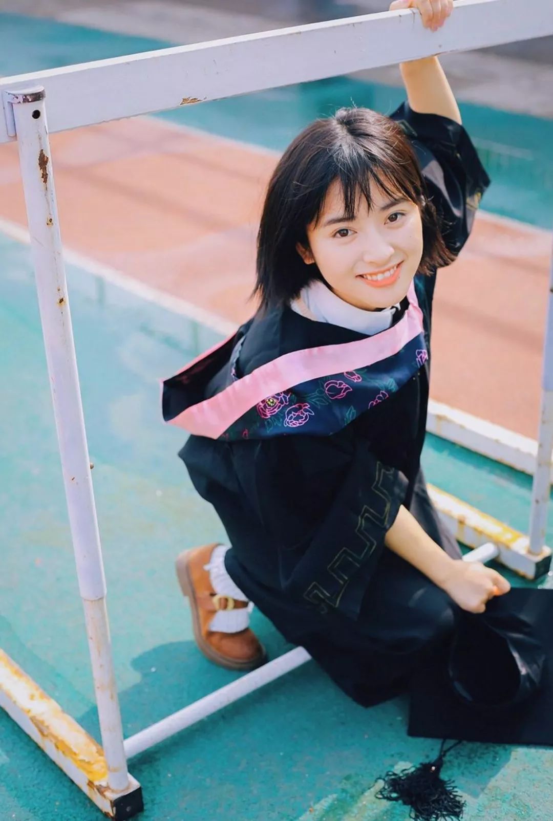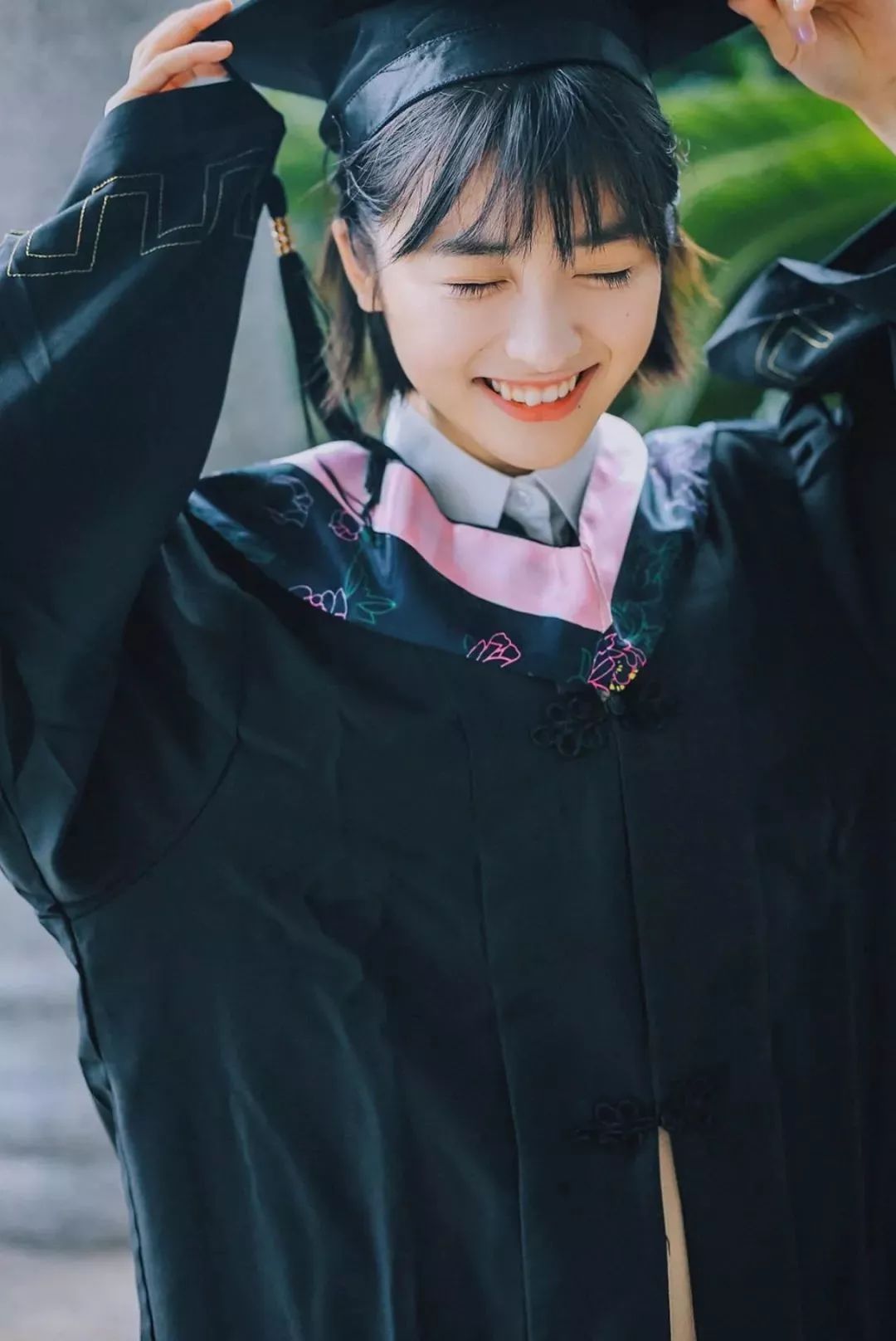 李兰迪的毕业照↑眉眼弯弯,笑得一脸灿烂的她,加上一头齐肩短发,这样清爽又阳光的女孩子,更是让人想要抱回家!