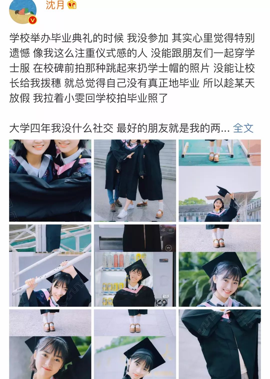 在沈月PO出毕业美照的同时,她其实也和我们一样,会有许许多多的感慨,很多很多想说的话,以及更多的感激之情想要表达出来↑
