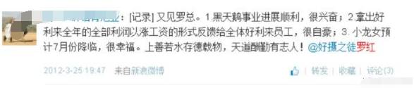 2011年,江一燕还在微博晒出“神秘人”送的生日礼物,而这个苦心抢第一的神秘人,后面疑似有网友扒出是罗红。当然,这条微博已经被删了。