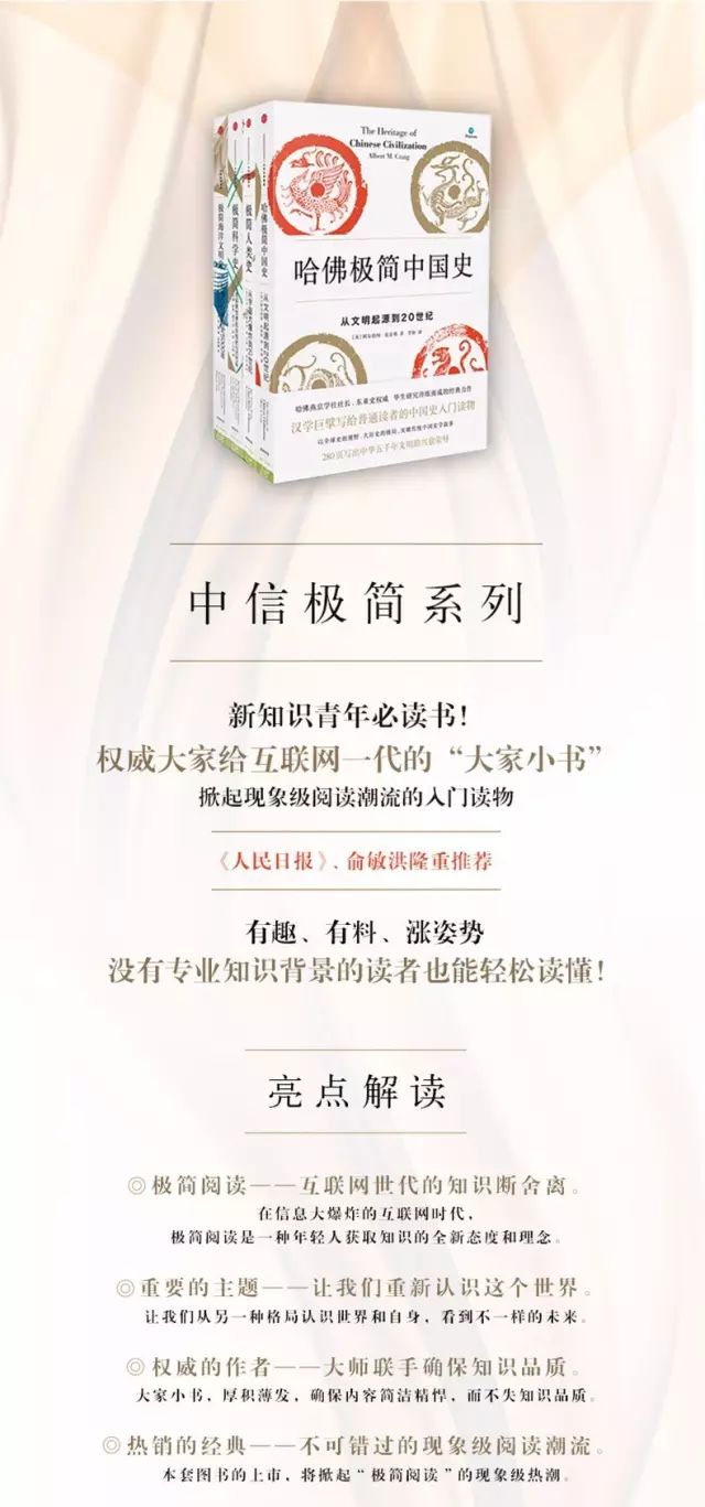 从来没有一部讲述中国历史的书,能像《哈佛极简中国史》一样,在280页的篇幅内,就能让我们在见证王朝兴衰的同时,理解跨越王朝更迭的政治、经济、社会和文化上的长时段演变,深刻体会历史上中国人的思想和感情。