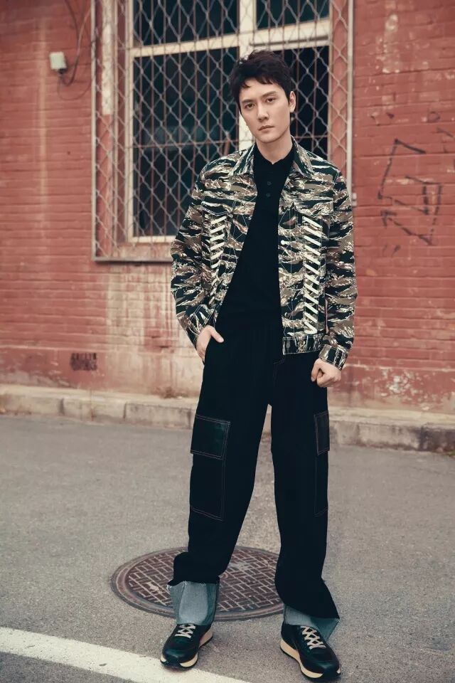 演员冯绍峰身着利落潇洒的迷彩工装外套,搭配粗旷剪裁的直筒牛仔裤,脚上的 HOGAN R261 复古跑鞋,光泽的皮质为整体造型增添了质感,是追求品质的帅气绅士们不可或缺的百搭神器。(图片来源:我们的街拍时刻)