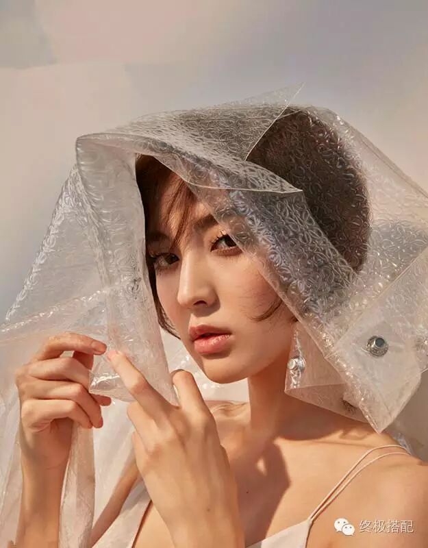 白色性感吊带,映衬娜扎雪白的肌肤,头上塑料的装饰,更加迷人个性。
