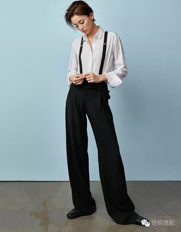 脱下裙子,换上黑色背带裤的娜扎,又颇有男孩子的霸气,搭配白色衬衫,干净利落,